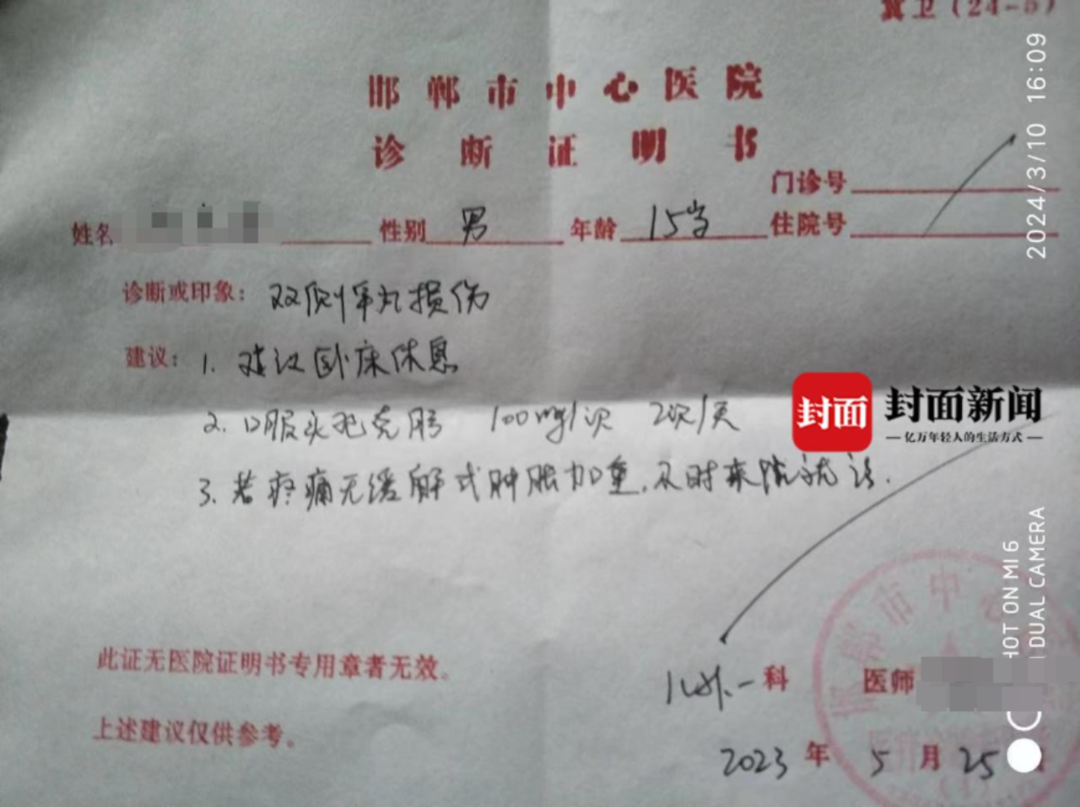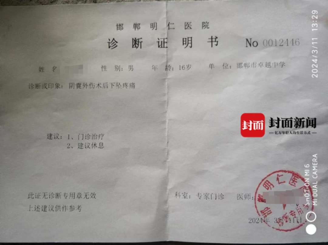邯鄲一高中生被同學打傷睾丸,打人者自稱姥爺是縣長,其父否認