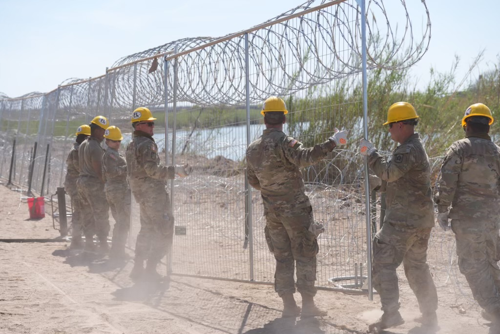 得克薩斯州國民警衞隊在邊境設置鐵絲網 圖源:得州軍事部門(Texas Military department)