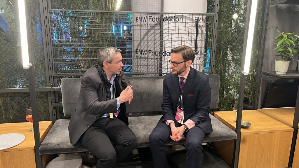 寶馬基金會政治戰略與對話主管格雷瓜爾·魯斯(右)接受採訪