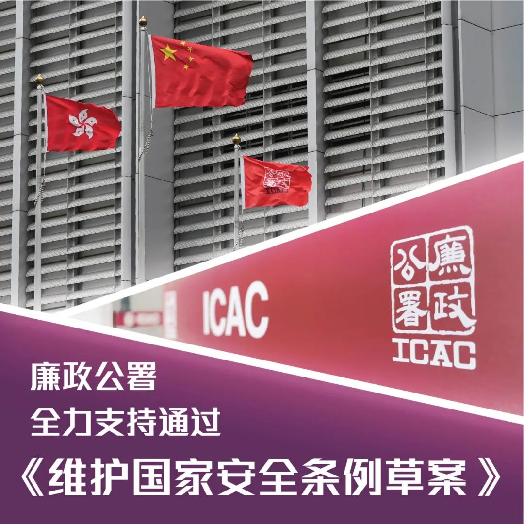香港廉政公署微信公眾號20日發文表示,歡迎立法會通過《條例草案》,並會全力支持有關法律在香港有效實施。