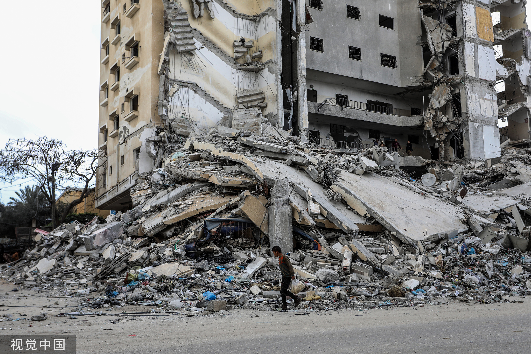當地時間3月18日,以色列空襲後的拉法街頭 圖源:視覺中國