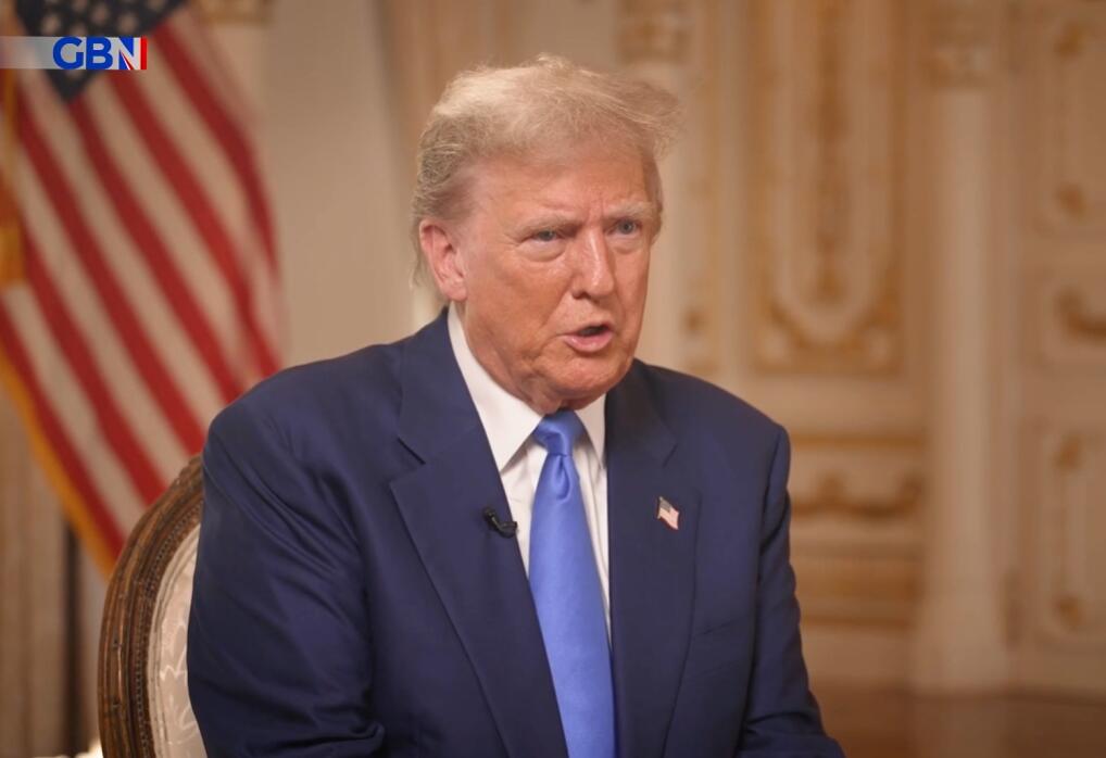 當地時間3月19日,英國GB News播出對特朗普的專訪節目 GB News報道截圖