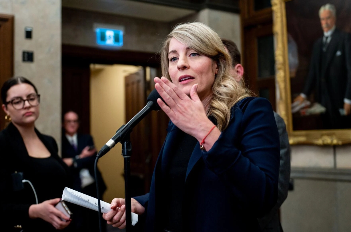 資料圖:當地時間2024年3月18日,渥太華,加拿大外交部長梅拉妮·喬利在下議院前廳對記者發表講話。(圖源:《多倫多星報》)