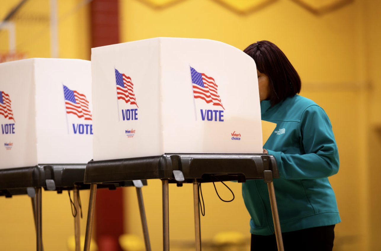3月5日,選民在美國弗吉尼亞州彼得斯堡的投票點參與投票。美國2024年總統選舉5日迎來所謂“超級星期二”黨內初選,十幾個州和美國領地的選民當天為競選人投票。初選是美國總統選舉的第一階段。(圖源:新華社)