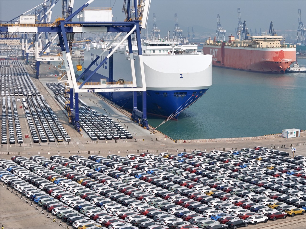 2024年3月3日,汽車運輸船靠泊山東港口煙台港汽車碼頭準備裝運出口汽車/IC Photo