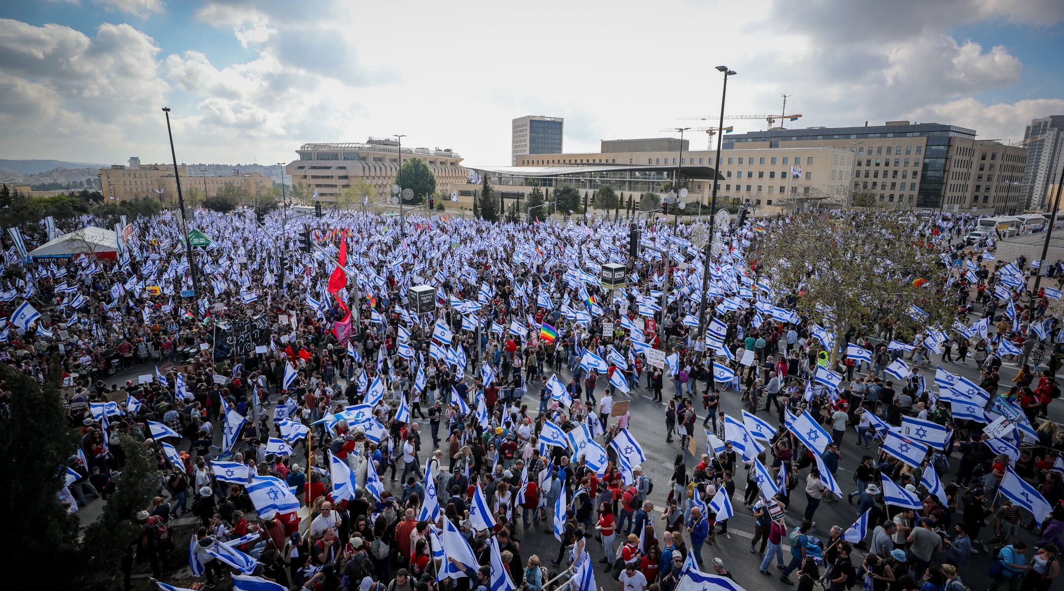 以色列民眾2023年3月27日在以色列最高法院前舉行示威(圖源:猶太電訊社)