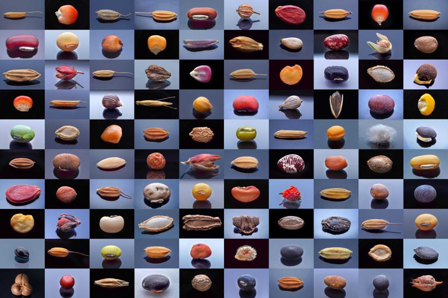微距鏡頭下,湖南省農作物種質資源庫的種子千姿百態(100個種子拼版照片)。