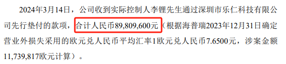 3月15日,海普瑞公告稱收到實控人先行墊付款項,合計8980.96萬元(按案件匯率折算成人民幣)。