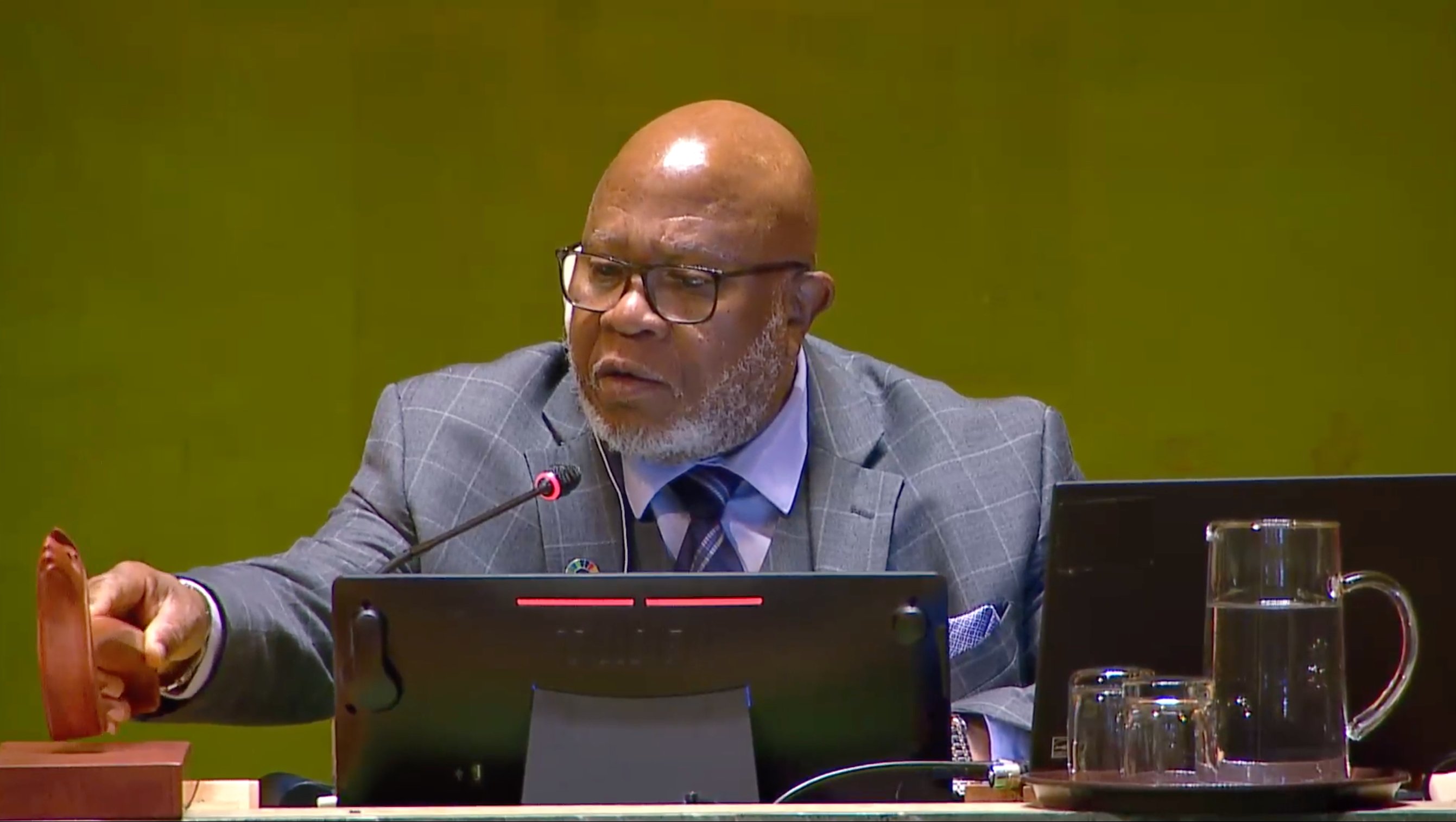 聯合國大會第78屆會議主席丹尼斯·弗朗西斯21日宣佈AI決議通過(圖源:聯合國)