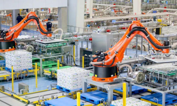 路風教授認為,今天提倡發展新質生產力,就是要以新的精神面貌、新的方式使中國工業在任何領域做大做強。圖為伊利乳業工廠的機器臂在工作