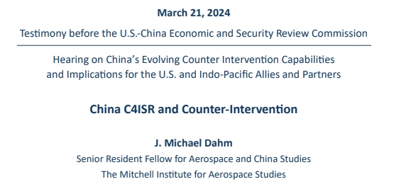 從達姆提交的書面證言來看,其關注點在於中國C4ISR系統與反干預能力。