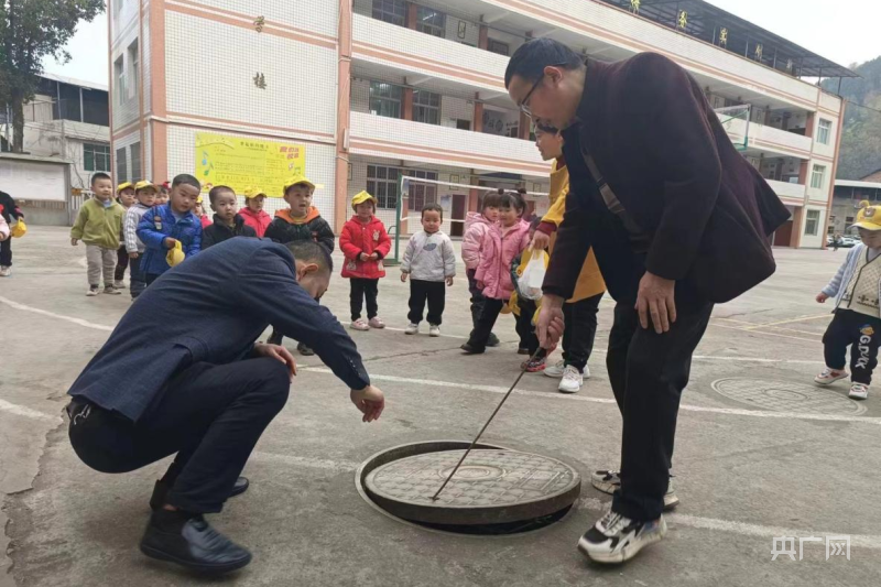 在學校開展井蓋排查工作(央廣網發 平昌應急管理局 供圖)
