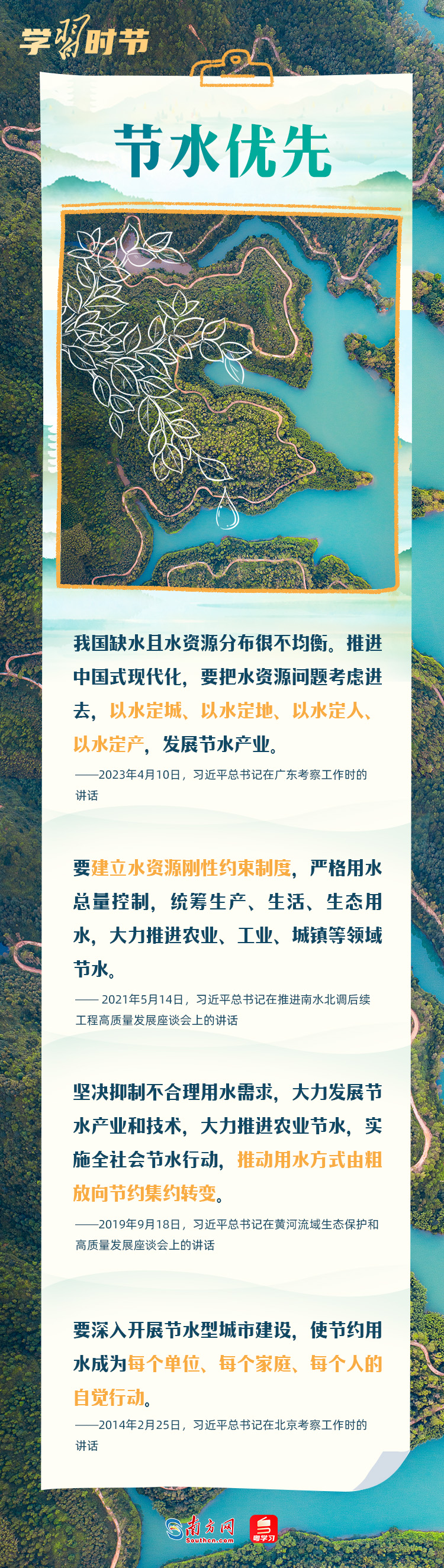 善治國者必善治水。黨的十八大以來,習近平總書記站在實現中華民族永續發展的戰略高度,親自擘畫、親自部署、親自推動治水事業,就治水發表了一系列重要講話,為新時代治水興水提供了科學指南和根本遵循。3月22日是“世界水日”,讓我們一起重温總書記關於治水的重要論述,走好水安全有效保障、水資源高效利用、水生態明顯改善、水環境有效治理的高質量發展之路。