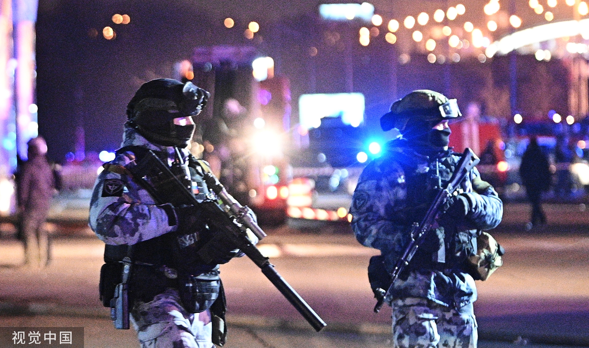 槍擊事件過後,“克羅庫斯城”音樂廳發生火災 圖源:視覺中國