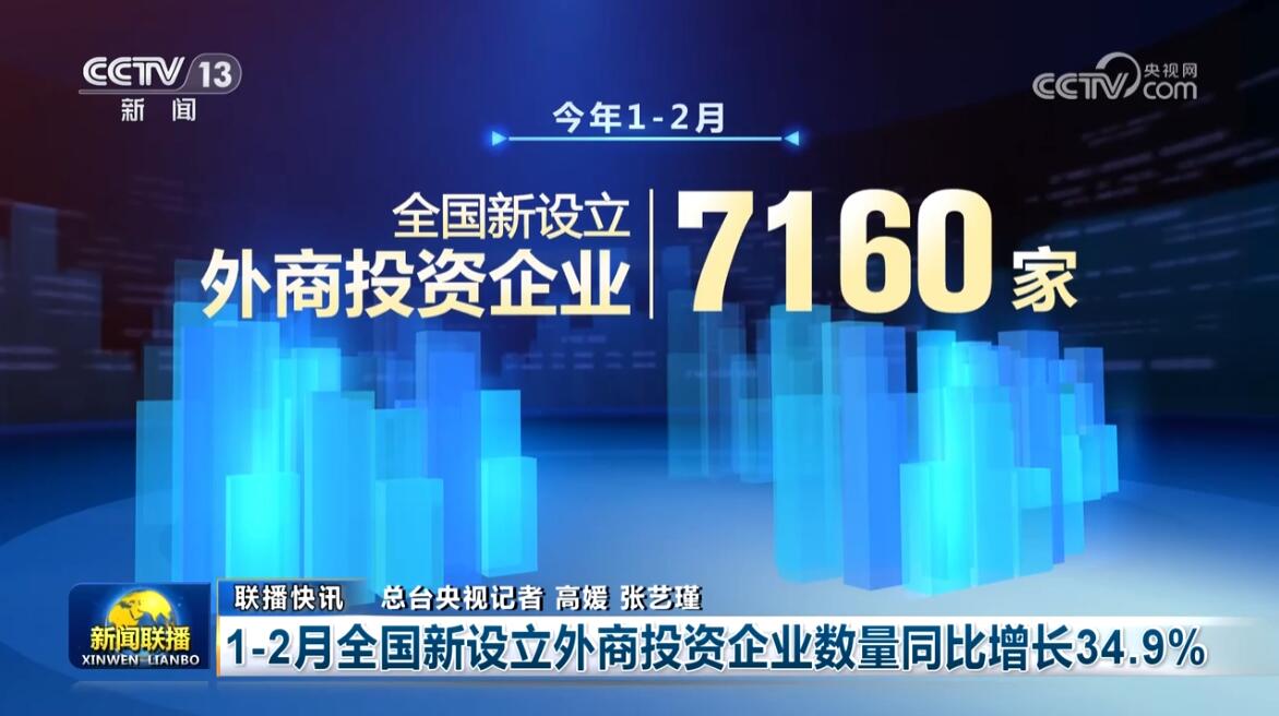 1-2月全國新設立外商投資企業數量同比增長34.9%