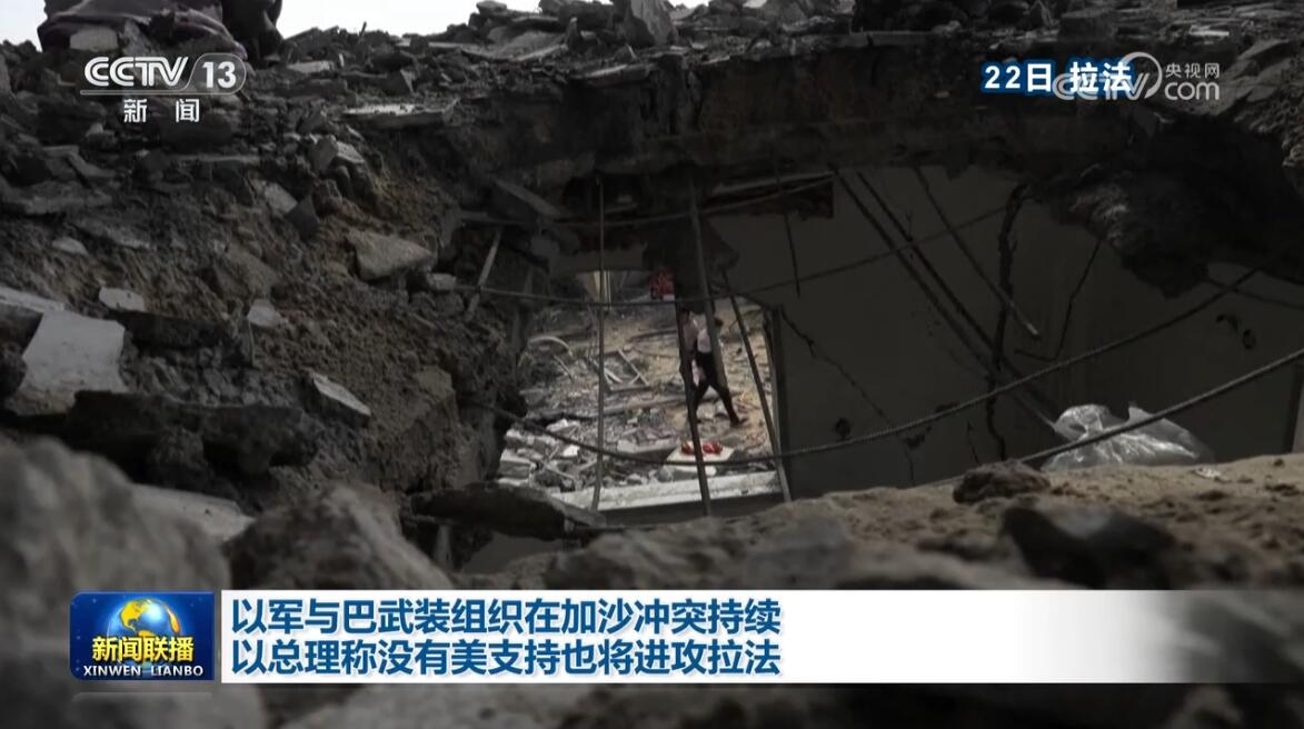 以色列國防軍與巴勒斯坦武裝組織在加沙地帶多地的衝突仍在持續。22日,以色列總理內塔尼亞胡對到訪的美國國務卿布林肯説,沒有美國的支持,以色列也將對加沙地帶南部城市拉法發起地面進攻。