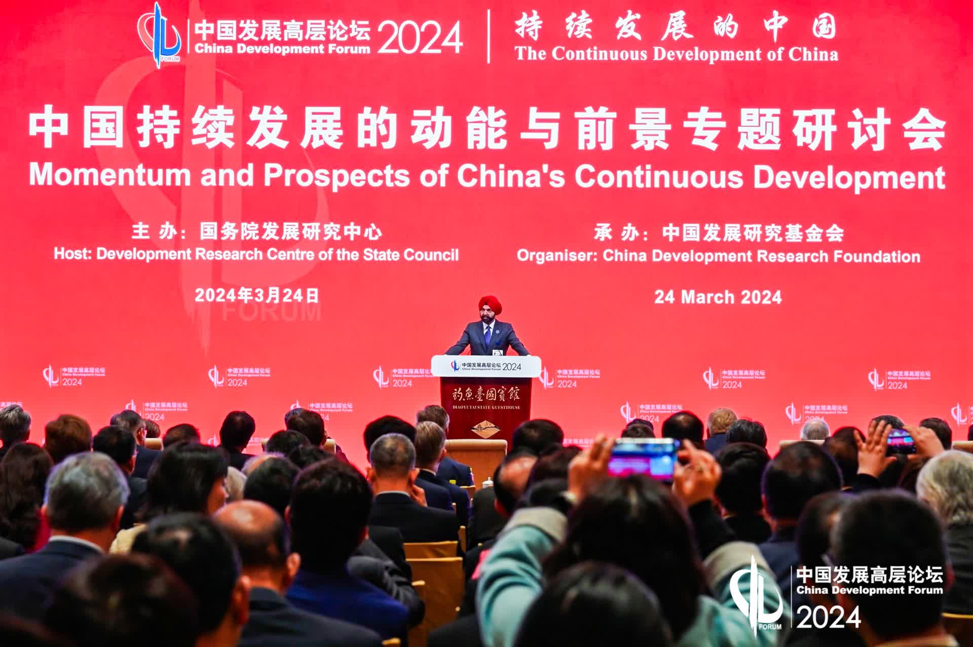 中國發展高層論壇2024年年會3月24日上午舉行首場專題研討會“中國持續發展的動能與前景”,世界銀行集團行長彭安傑在發言中説,所有經濟體的發展之路都並非一帆風順,充滿挫折、失誤,是漸進式的發展。但看看今天的中國,就知道一切皆有可能。