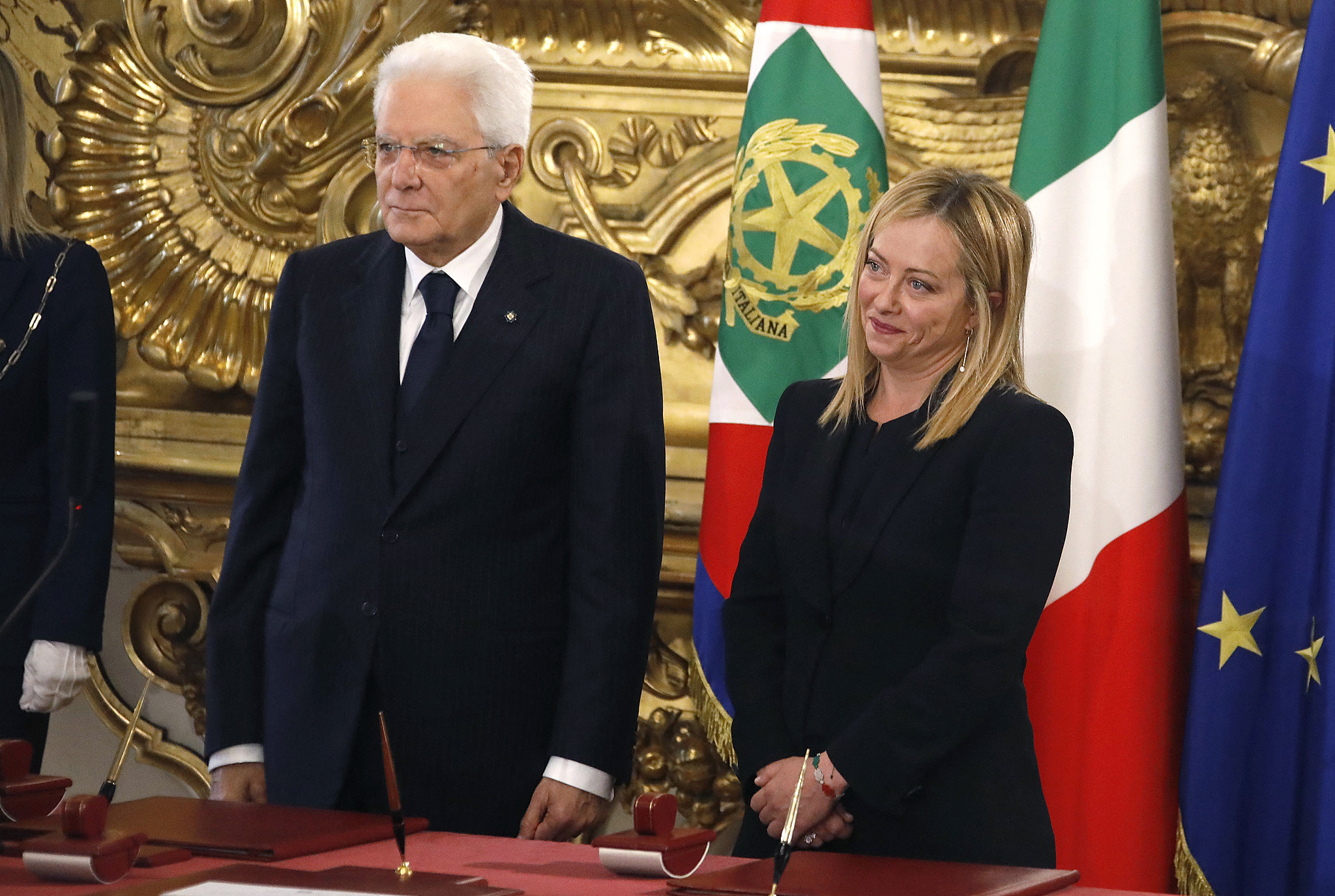 資料圖:意大利總統馬塔雷拉和總理梅洛尼 圖源:視覺中國