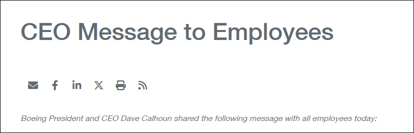卡爾霍恩同日在致全體員工的公開信中承認即將卸任的消息,同時坦承,今年初阿拉斯加航空的波音飛機“艙門脱落”事件改變了公司走向。