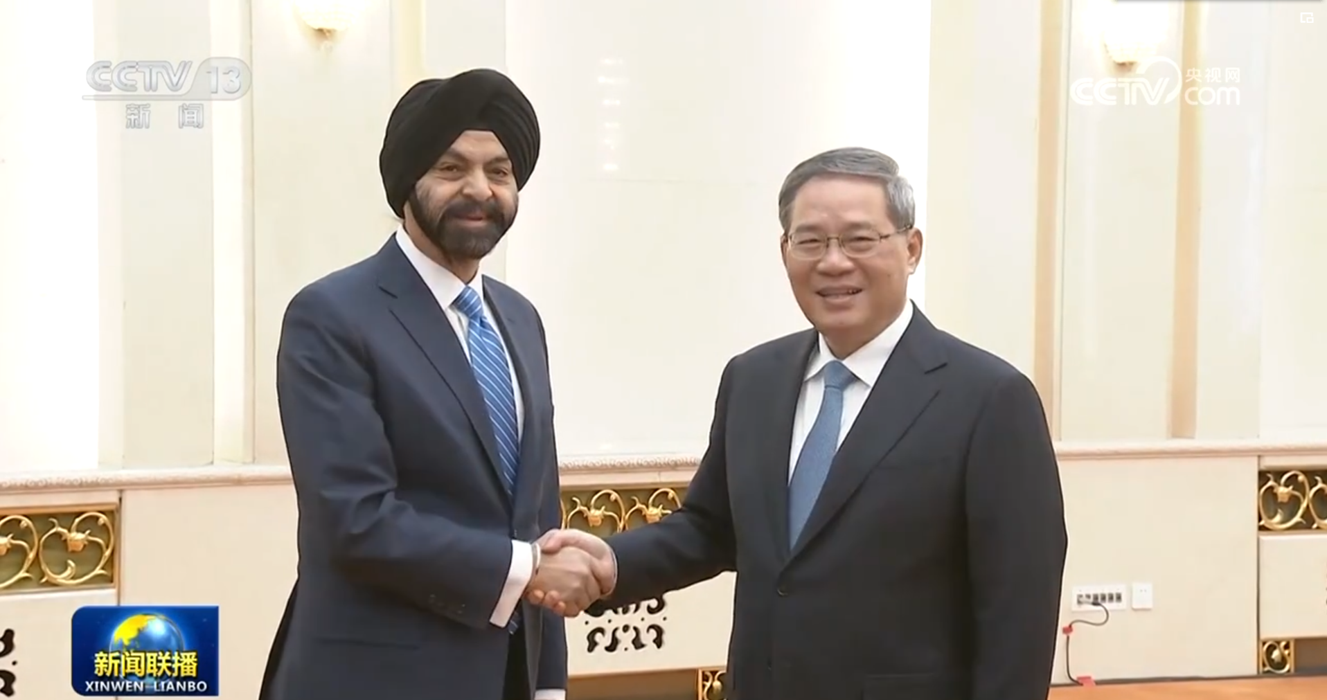 國務院總理李強25日在京會見世界銀行行長彭安傑。