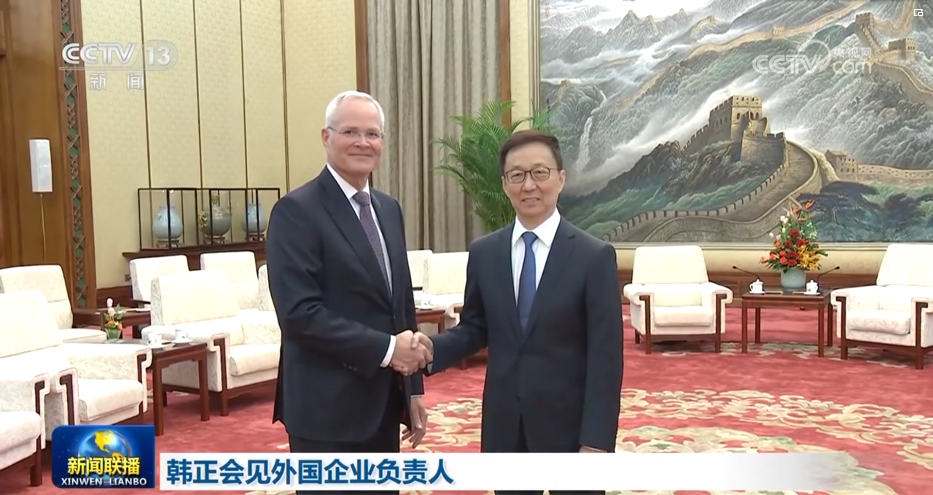 國家副主席韓正25日在北京分別會見美國埃克森美孚公司董事長兼首席執行官伍德倫和英國阿斯利康公司全球首席執行官蘇博科。