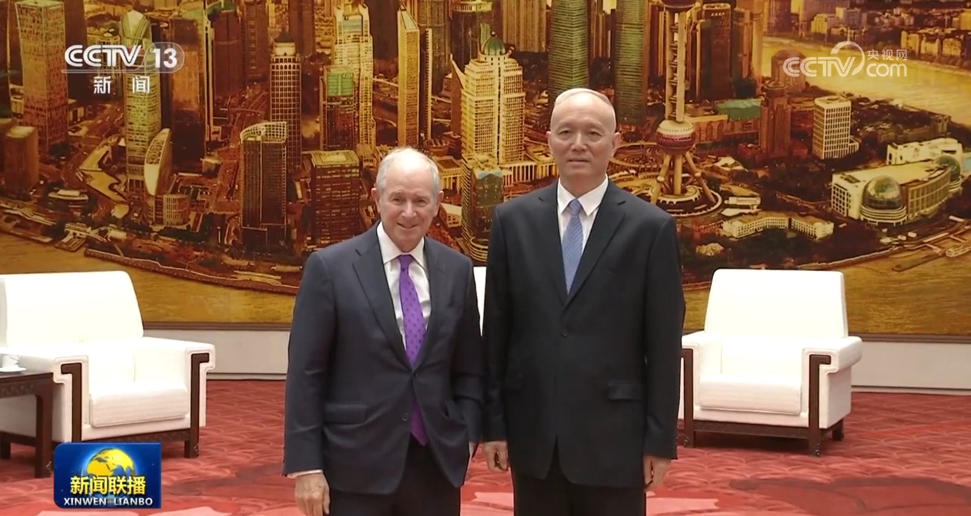 3月25日,中共中央政治局常委、中央書記處書記蔡奇在北京會見美國黑石集團董事長兼首席執行官蘇世民。