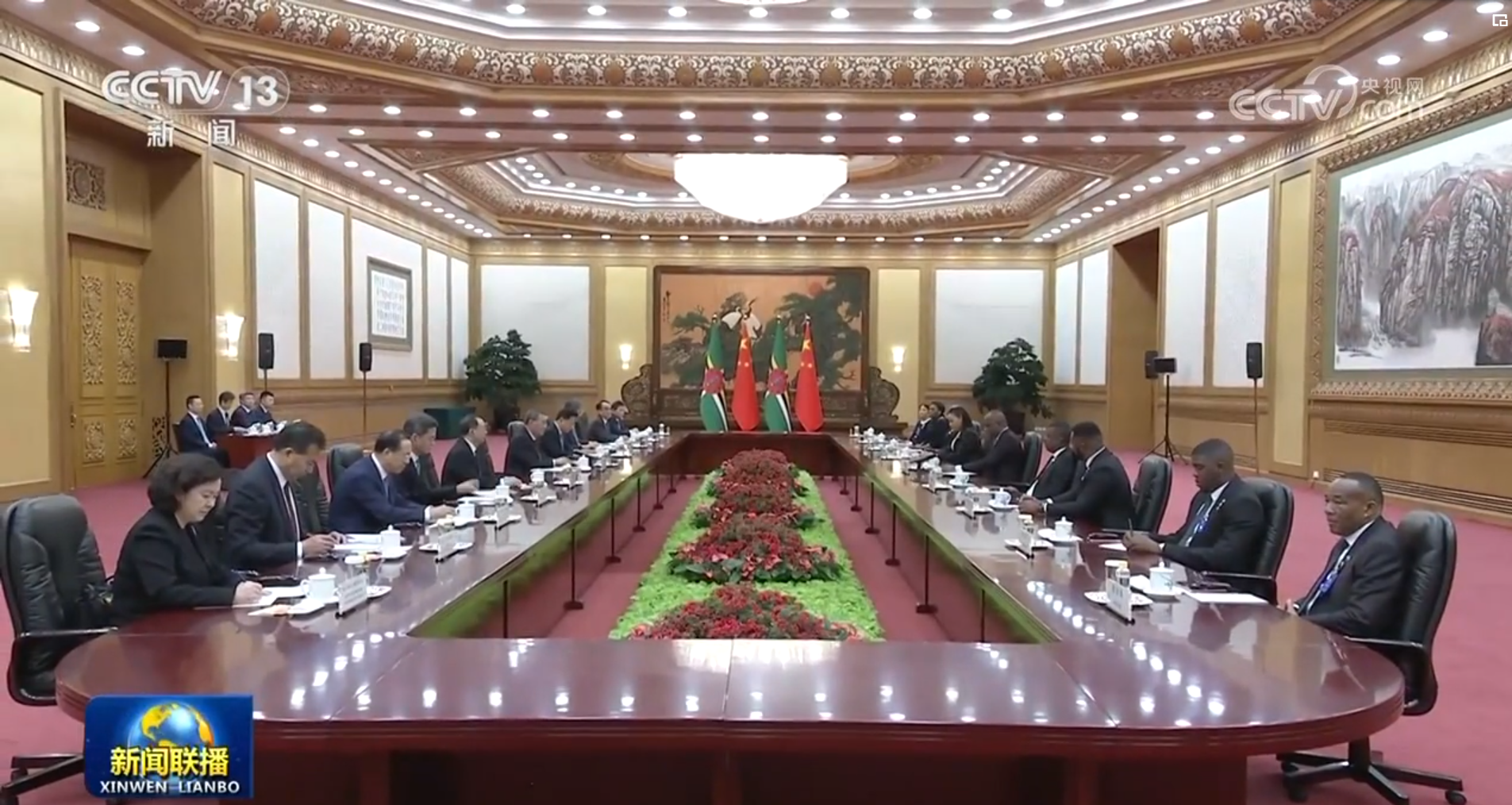 國務院總理李強25日在京同來華進行正式訪問的多米尼克總理斯凱里特舉行會談。