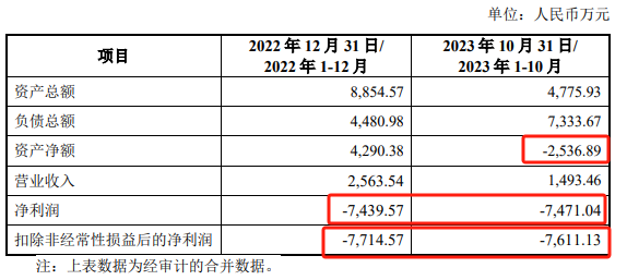 需要指出的是,福昕鯤鵬2022年和2023年前十個月淨利潤均虧損,分別為-7439.57萬元和-7471.04萬元。並且福昕鯤鵬扣非後歸母淨利潤虧損更多,分別為-7714.57萬元和-7611.13萬元。截至2023年10月31日,福昕鯤鵬資產淨額為-2536.89萬元,即處於資不抵債的狀態。