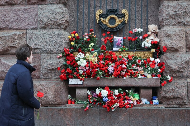 當地時間2024年3月24日,俄羅斯聖彼得堡,全國哀悼日當天,民眾自發悼念莫斯科音樂廳恐襲事件遇難者。圖片來源:IC photo