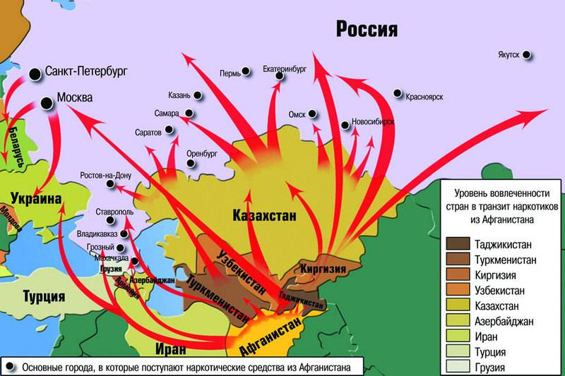 從阿富汗經中亞地區向俄羅斯走私毒品的主要線路