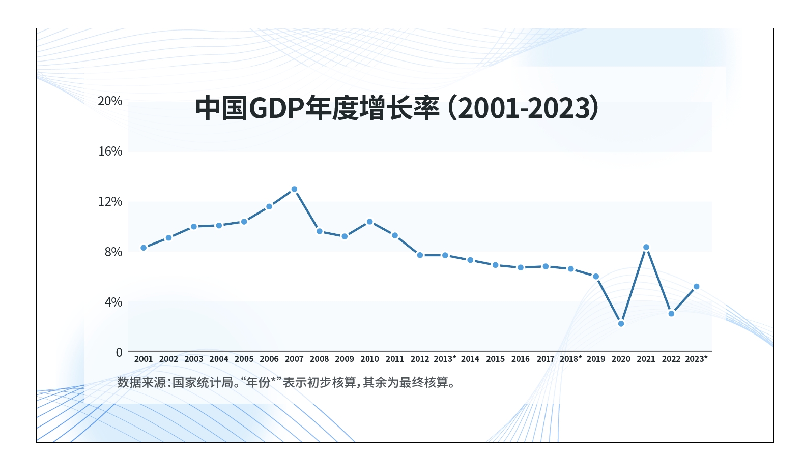 中國GDP年度增長率(據國家統計局公佈數據整理)