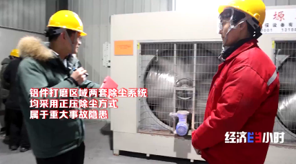 **應急管理部聯合執法小分隊專家 胡維西:**根據國家相關標準,金屬粉塵必須採用負壓方式除塵。