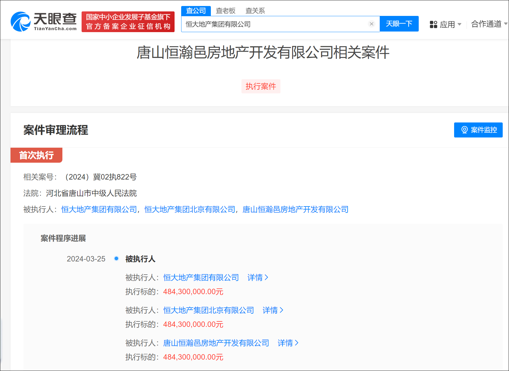 恒大地產被強制執行4.8億餘元