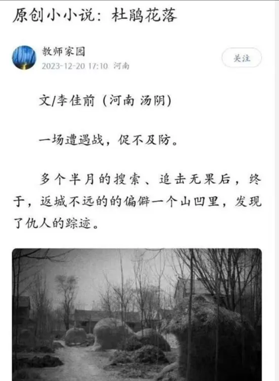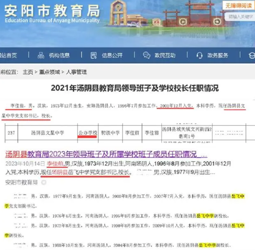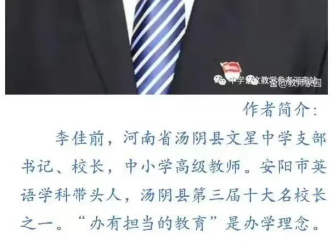 有網友發現,根據試卷上的信息和網絡公開資料,這篇文章是河南省湯陰縣一所中學的校長李佳前於去年撰寫併發在網上的。湯陰縣是南宋抗金名將岳飛的故鄉。