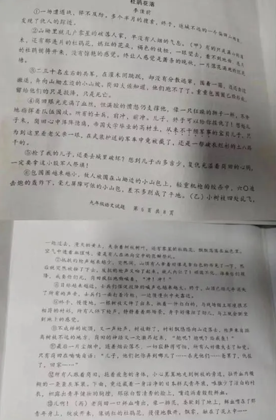 四川省成都市新都區爭議試卷問題連日來持續引起輿論關注。出現問題的試卷是新都區一份初三語文測試試卷,試卷中出現了一篇被指涉嫌美化侵華日軍和侮辱八路軍的文章《杜鵑花落》。