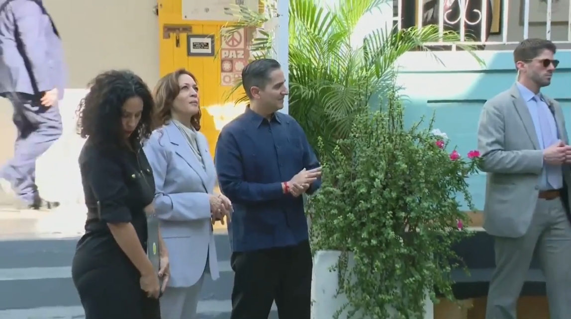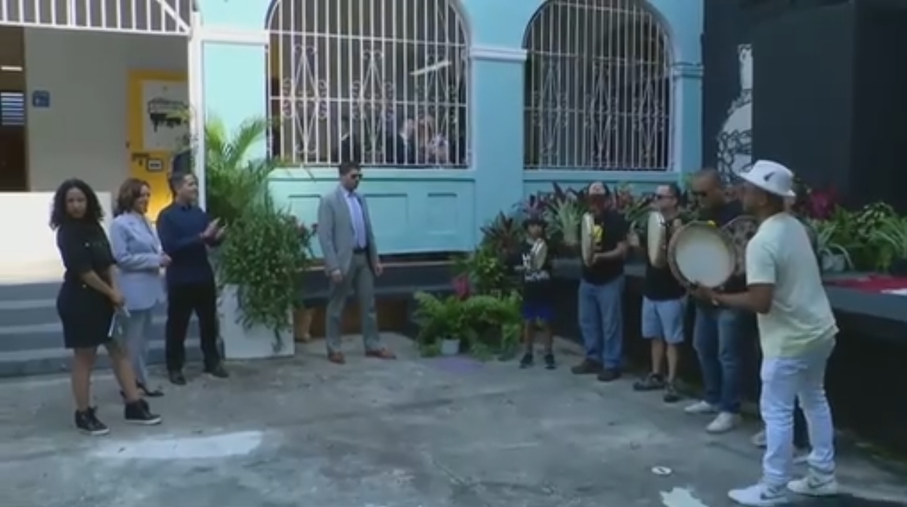 據報道,當地時間上週五(22日),哈里斯訪問了波多黎各,並在首府聖胡安桑圖爾塞區的一個社區中心停留,聽取當地工作人員介紹他們是如何支持當地藝術家的。
