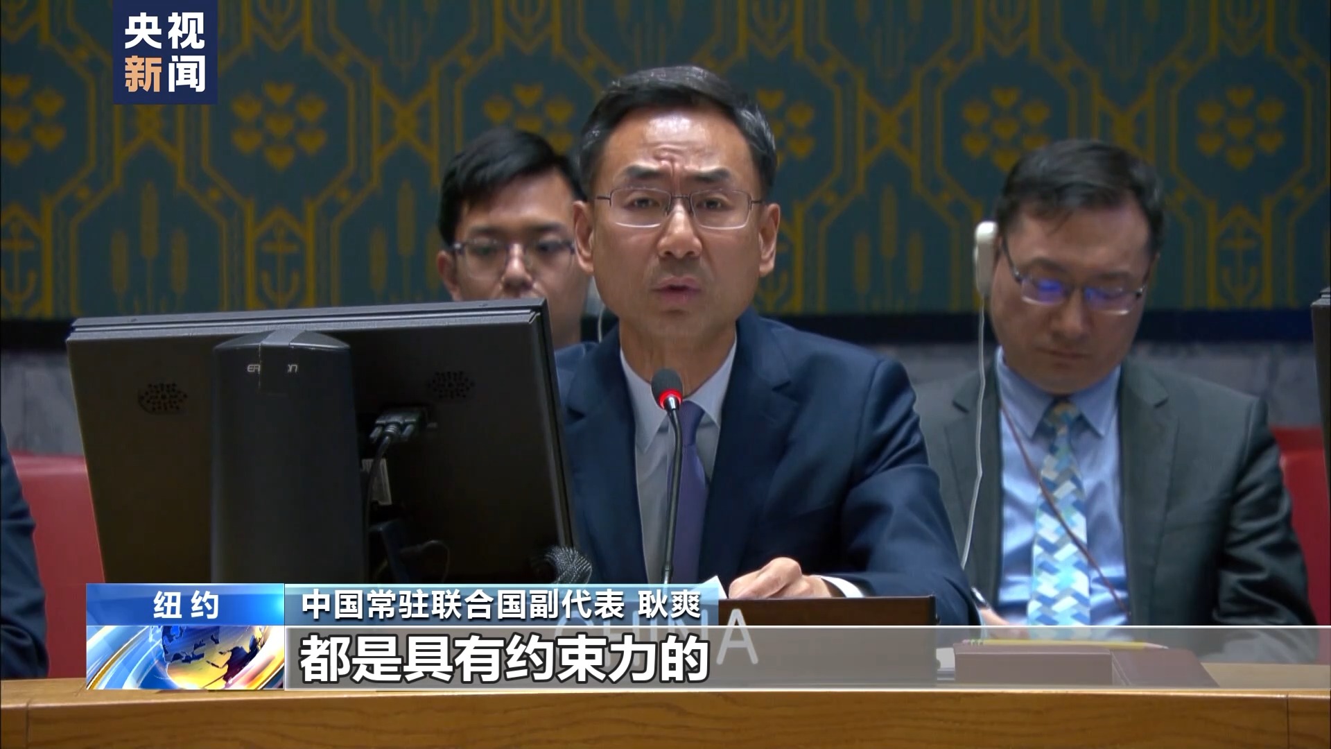 **中國常駐聯合國副代表 耿爽:**我要強調,安理會決議,包括第2728號決議,都是具有約束力的。這一點毋庸置疑,不容挑戰。每個國家在加入聯合國時,都承諾執行安理會的決定,這是憲章義務。美國作為安理會的常任理事國更應該帶頭遵守。