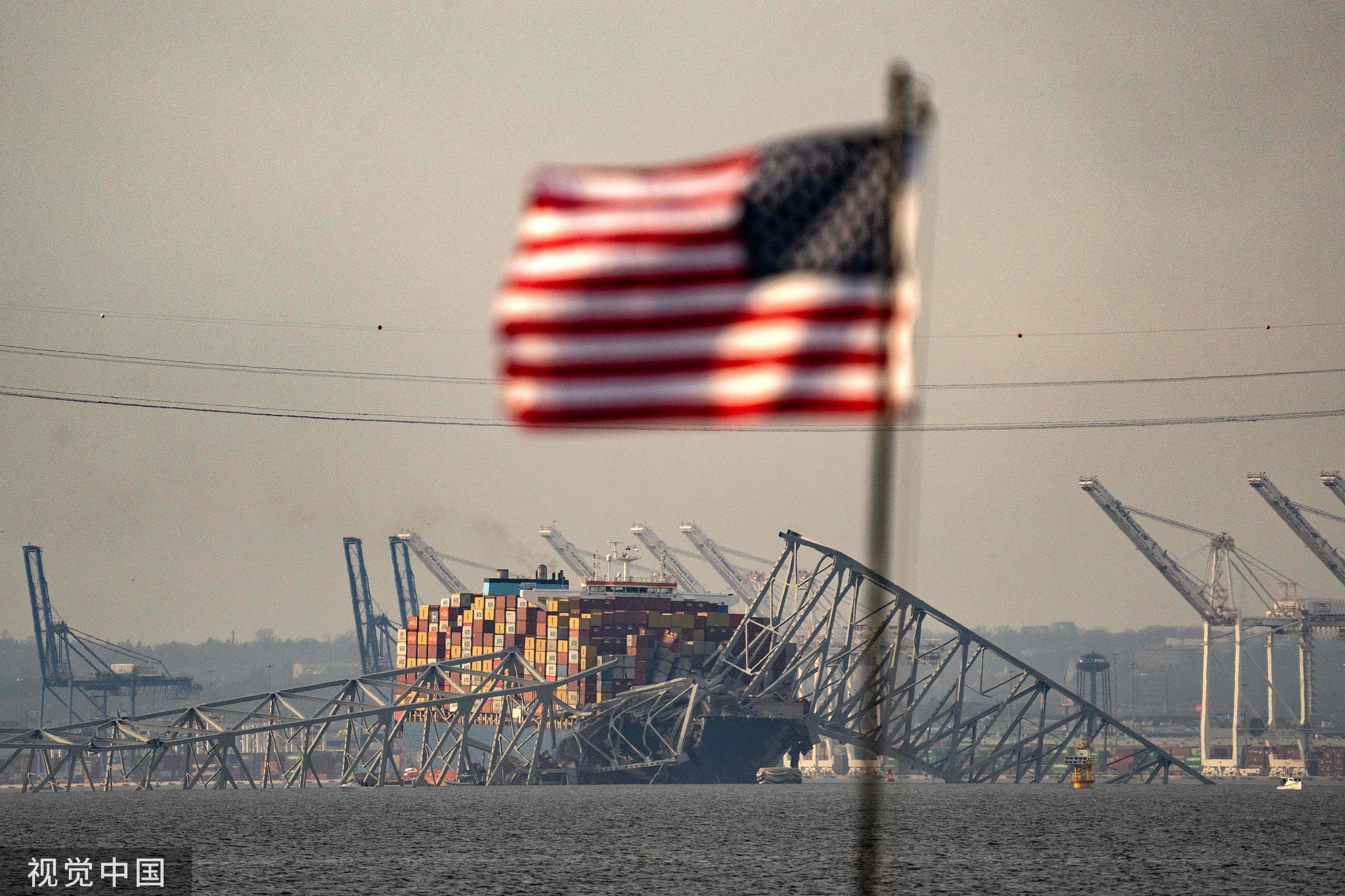 當地時間3月26日,美國馬里蘭州一艘貨船撞上弗朗西斯·斯科特·基大橋 圖自視覺中國