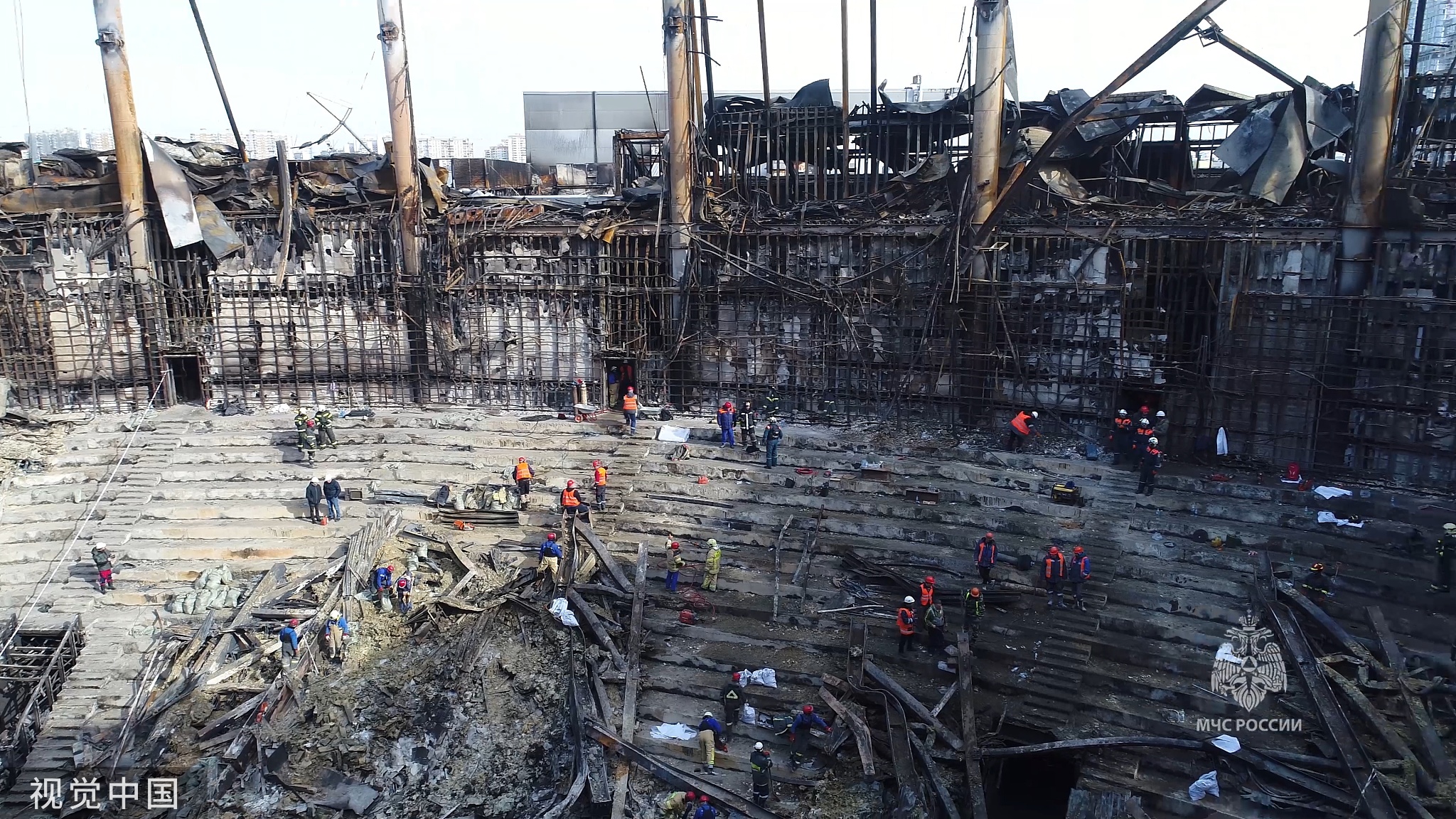 當地時間3月25日,莫斯科州遇襲音樂廳的瓦礫清理工作基本結束 圖源:視覺中國
