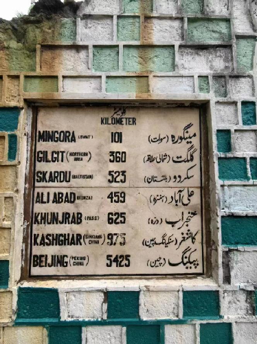 烈士塔上除了寫道這座塔是為修建喀喇崑崙公路犧牲的中巴兩國建設者修建,還寫道:這裏距離斯瓦特首都明格拉101公里、吉爾吉特360公里、斯卡都523公里、紅其拉甫625公里、北京5425公里。