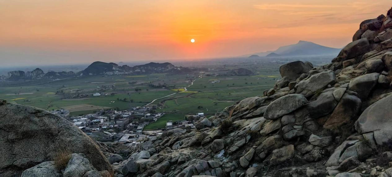 兩個小時後,我們又回到了古老的佛教路線,我們沿線考察了齋戒佛所在的雪格瑞村寺院遺址、巴乎佛塔,日頭偏西前來到了一座五百多米高的陡峭的石山跟前。山頂坐落着規模龐大的拉尼·噶特佛寺和佛塔。