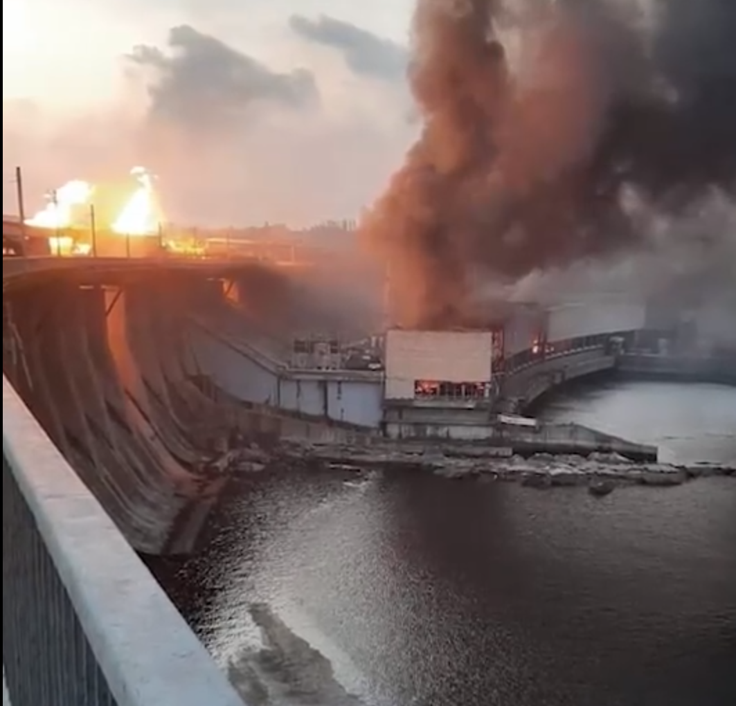 被擊中的第聶伯河水電站和哈爾科夫地區CHPP-5熱電站 圖源:社交媒體