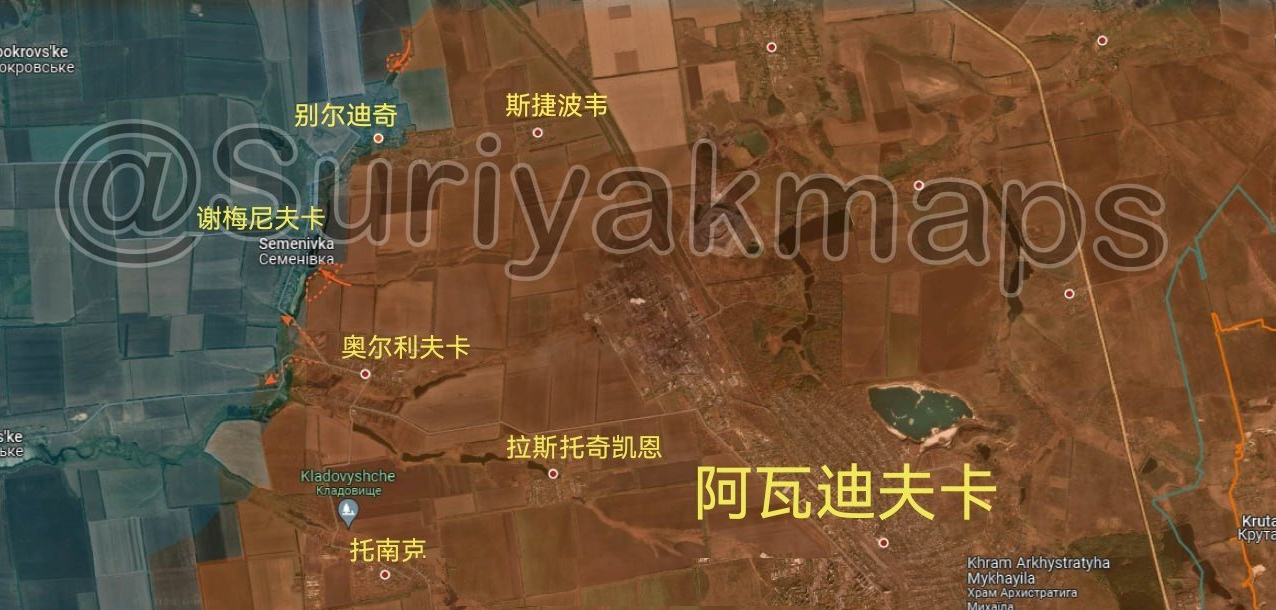 在阿夫傑耶夫卡方向,自俄軍奪取阿夫傑耶夫卡以來,俄軍中部軍區和頓內茨克人民軍繼續對阿夫傑耶夫卡西部的7個大體上連成一線的定居點發起進攻,在近一個月的持續進攻後,俄軍奪佔了波貝達,謝韋爾納、託內克、彼得羅夫斯克、拉斯托奇基尼村、斯博捷波等6個定居點。
