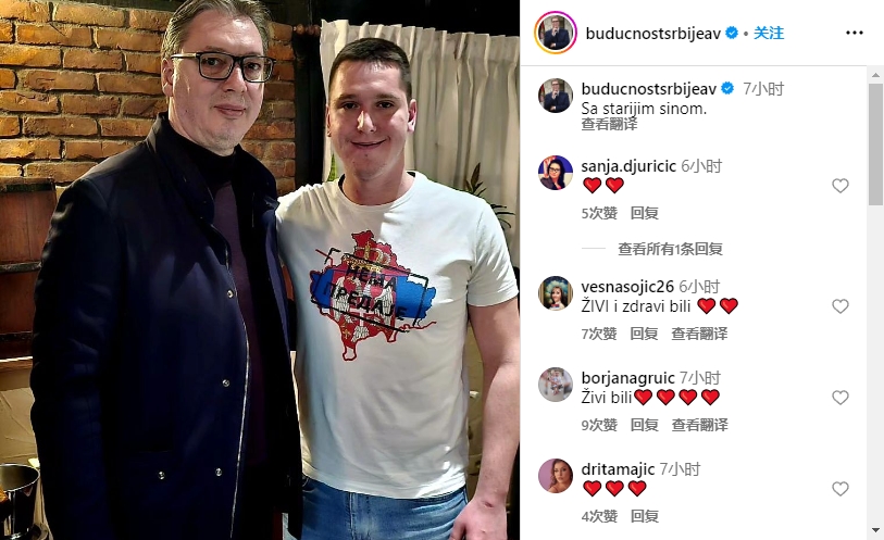烏克蘭媒體《每週鏡報》(ZN.UA Зеркало недели)注意到,在發佈上述帖文後,武契奇又在自己的Instagram上發佈了一張他與大兒子的合影。照片中,他的兒子身着一件印有科索沃和梅託希亞地圖的T恤,地圖塗色是塞爾維亞國旗,並寫有“不投降”字樣。