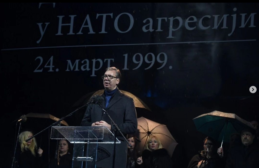 “他們曾想要摧毀、肢解我們的國家……但25年過去了,我們仍然沒有被擊敗。我們永遠不會同意分裂塞爾維亞。”當地時間3月24日,在塞爾維亞南部城市普羅庫普列舉辦的北約轟炸南聯盟遇難者悼念活動上,武契奇淋着雨,在演講中如是説道。