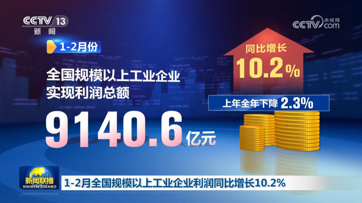 1—2月全國規模以上工業企業利潤同比增長10.2%