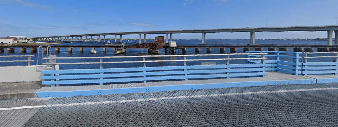 這座鐵路橋被FEC的開合查詢程序(https://bridgeschedule.com)稱為“聖露西河橋”(St Lucie River Bridge),實際無名,按筆者判斷是一座芝加哥式上開橋,建於1925年,至今已有99年曆史。