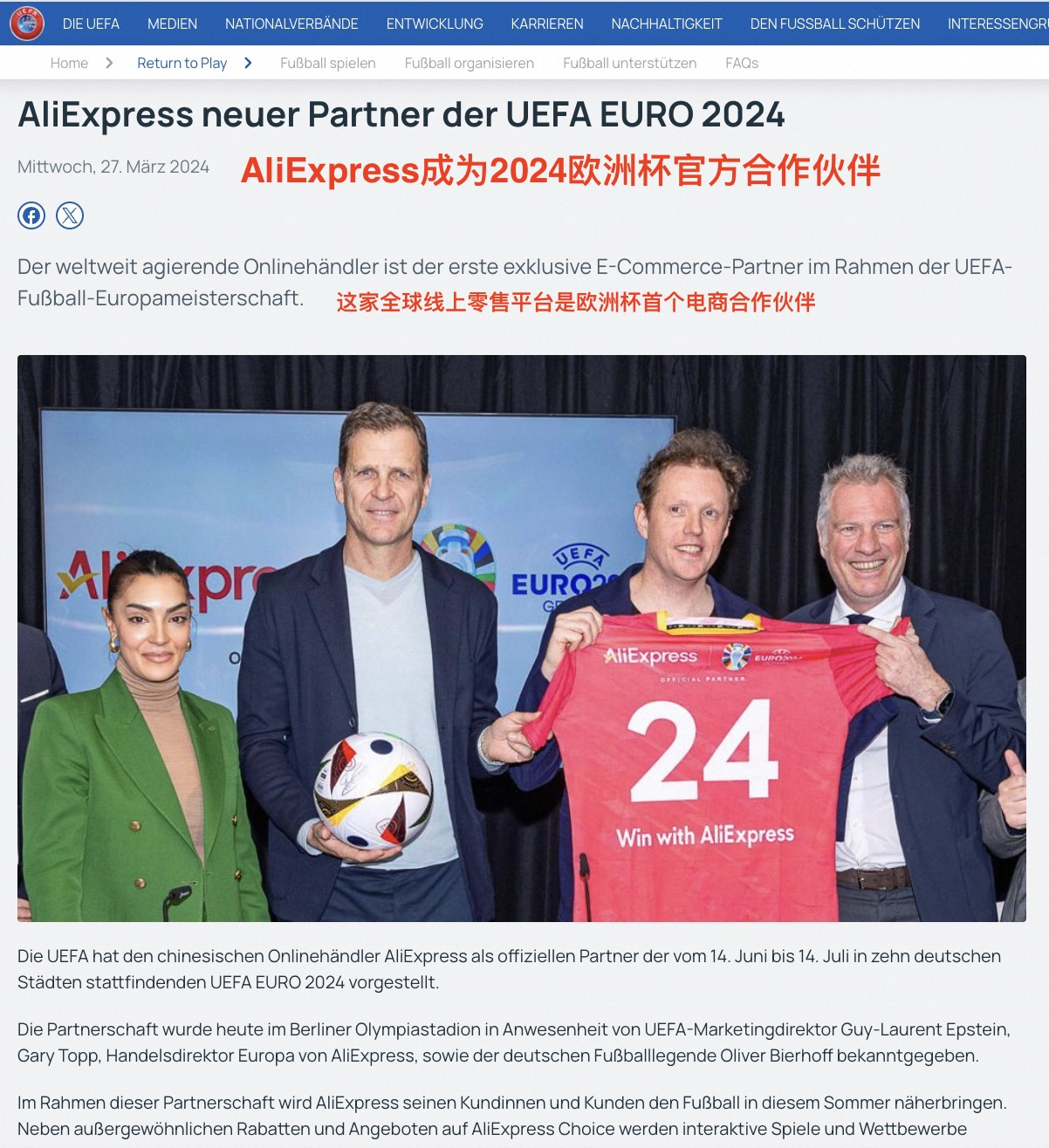 阿里速賣通拿下2024歐洲盃官方合作伙伴