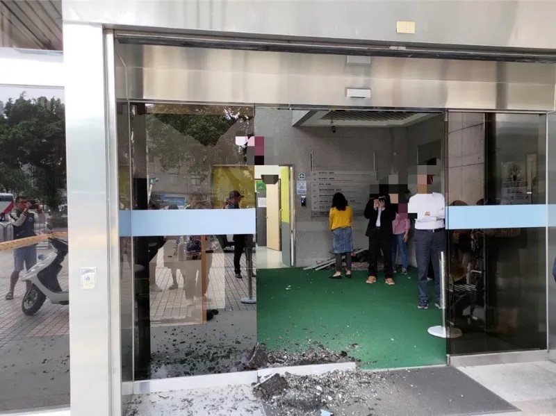 案發現場一樓大門玻璃碎裂滿地 圖自台灣“中央社”