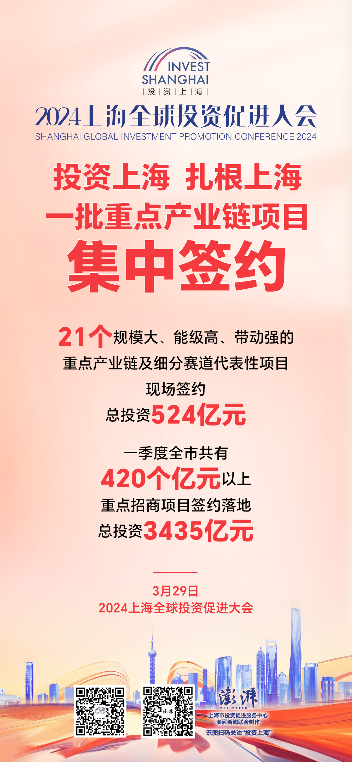 總投資524億元!2024上海全球投資促進大會現場簽約21個項目